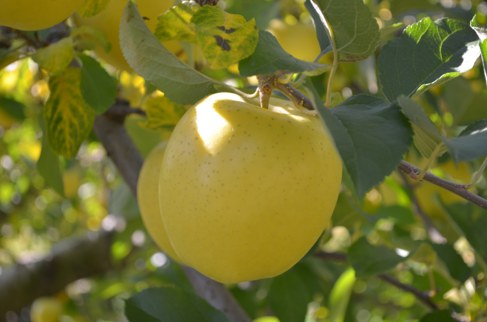 シナノゴールドと王林を収穫しました。 予定より少し遅れての収穫となりましたが、どちらも黄金色に輝いています。 この二つの品種は見た目が似ていますが、味は全く正反対で、シナノゴールドは酸味が有る品種、王林は酸味がない品種です。リンゴ品種の違いが楽しめる2品種です。