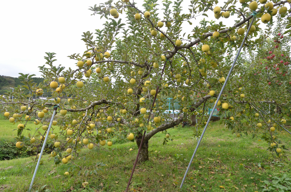 甘いりんご王林を収穫しました。黄色になる時期が収穫期の王林ですが、今年はなかなか緑色が抜けきらず、黄緑色の果実のまま熟期を迎え自然落下する果実が増えてきましたので、試食で熟期を確認して収穫となりました。褐斑病などで落葉してしまった影響があるかもしれません。...